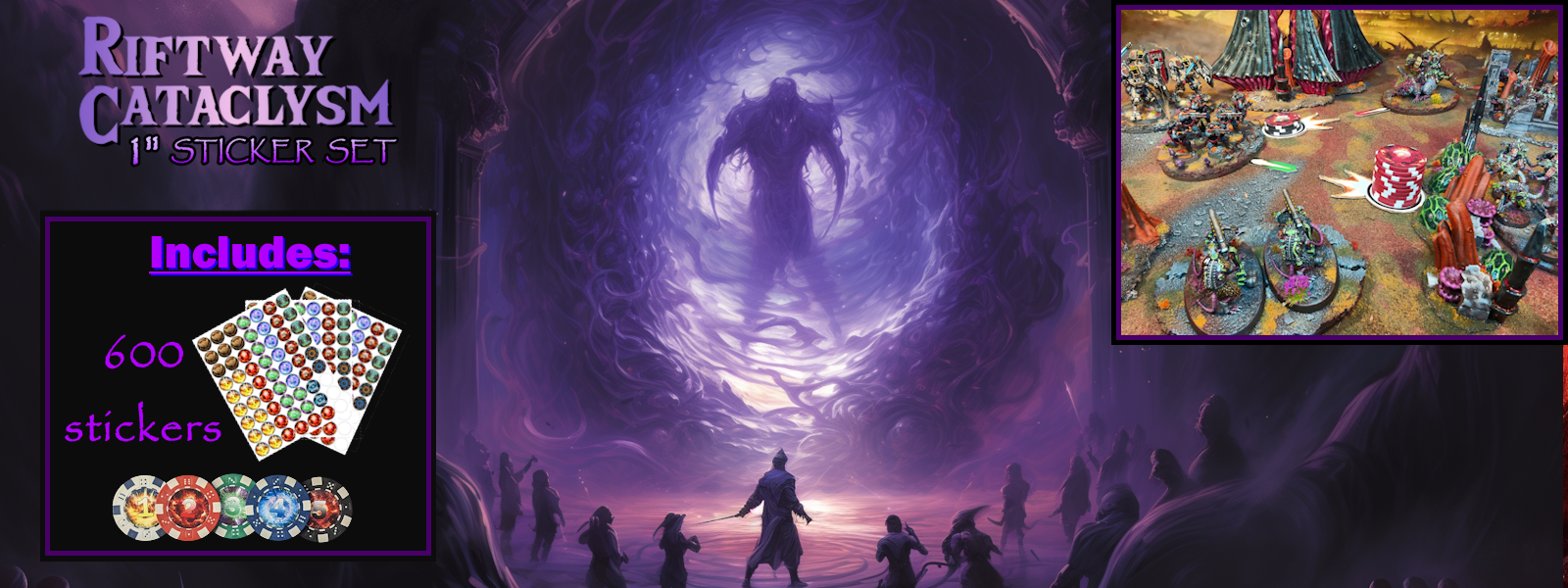 Convert any standard 300 piece poker set into a custom Riftway Cataclysm Damage Token set with these 600+ high quality stickers. Take your games to the next level! Our 1" stickers are our most affordable option for those without a home printer. Free print and play supplies can be found on RiftwayCataclysm.com.