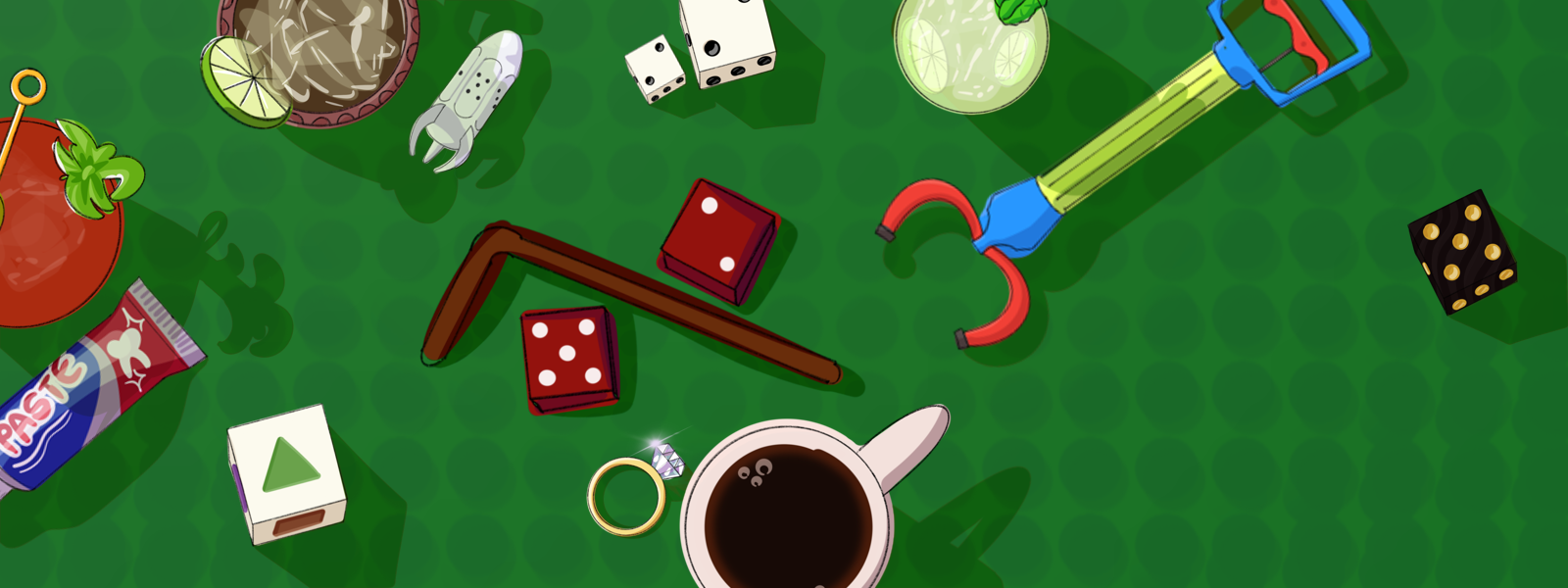 Purchase beverages for a short boost, items for a permanent effect, or swap out your dice for ones with special abilities.