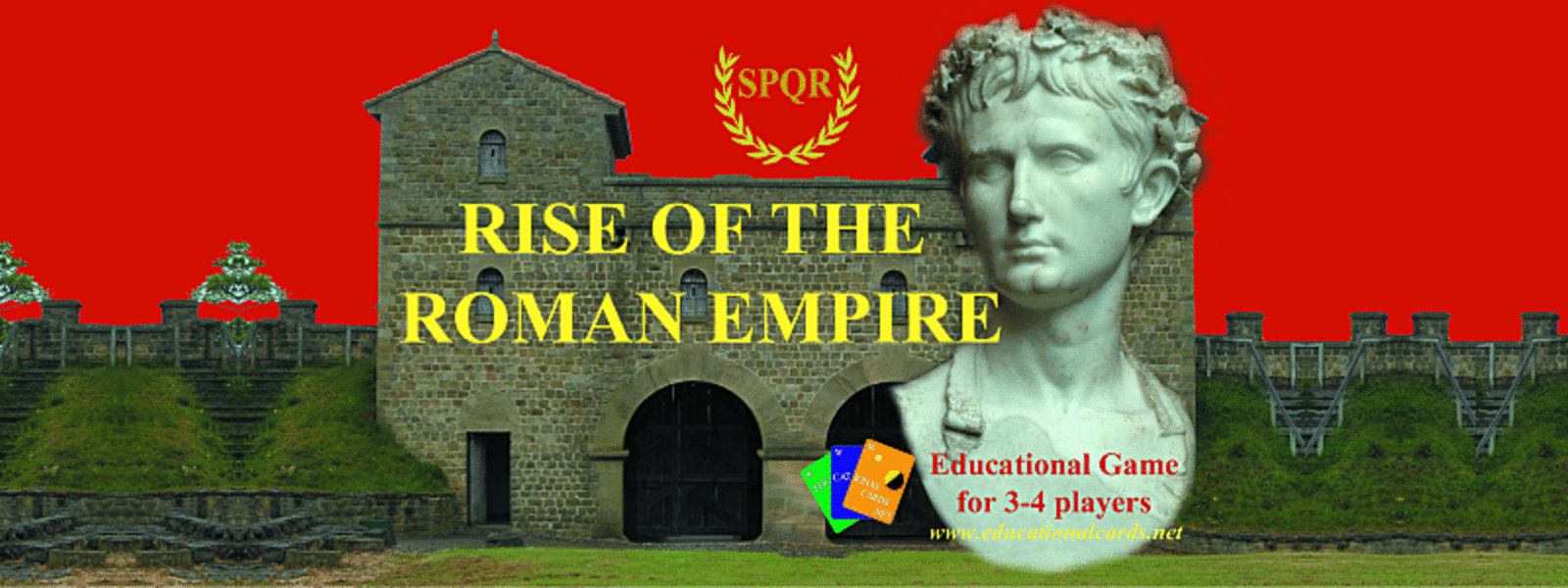 Rise of the Roman Empire is a fast-paced educational card game that brings you back to the I century A.D.; its multi-rule format allows to have fun in different ways (easy playing to cerebral) according to ability, time available, learning plan, etc. The eye-catching graphics bring emperors, political events, battles and the grandeur of Rome alive. Fun worksheets to boost learning are also available.