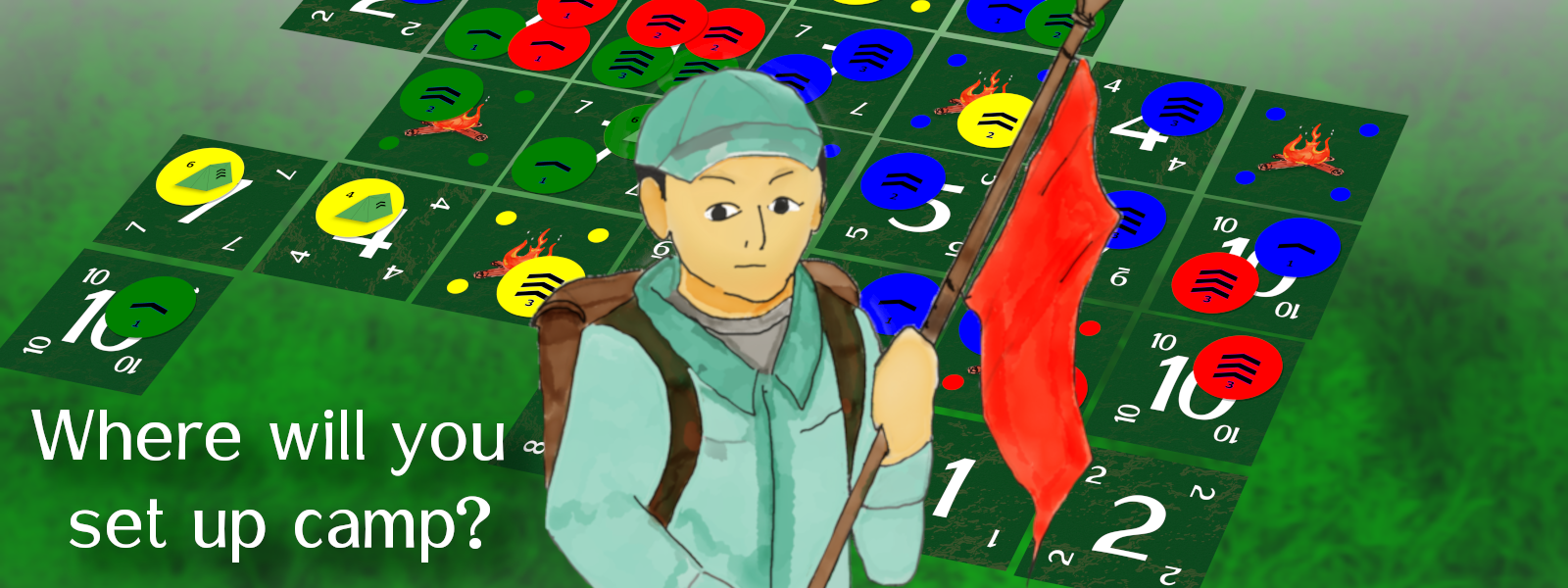 The game continues around the table with players taking turns from those options until one player adds their final Campsite card to the Campground. Each other player gets one final turn before points are counted. Players get points for each Campsite that they have a majority of Troop tokens on and the player with the most Points at the end wins the game!