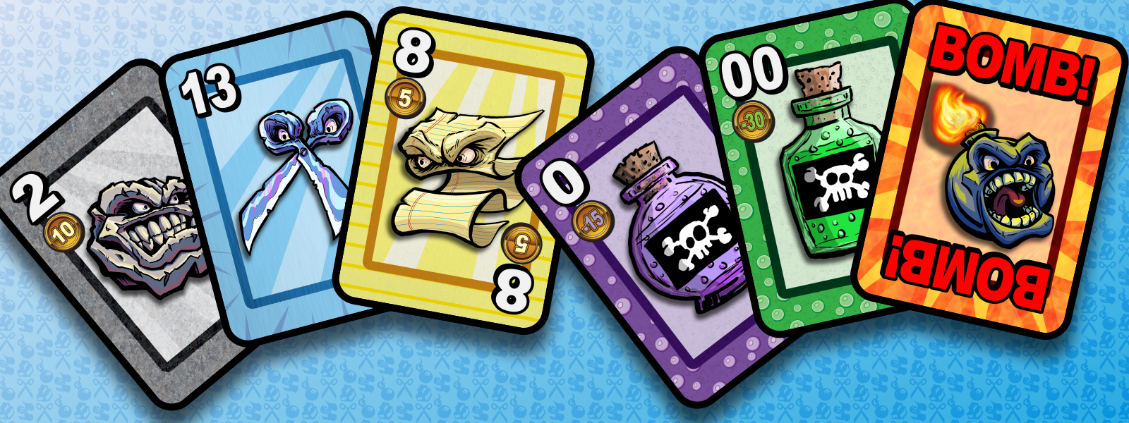This is the game that fans of Hearts and Spades always wanted but never knew existed! Why play with silly things like Hearts, Spades, Diamonds and Clubs when you can play with Rocks, Paper, Scissors and Bombs against each other?
