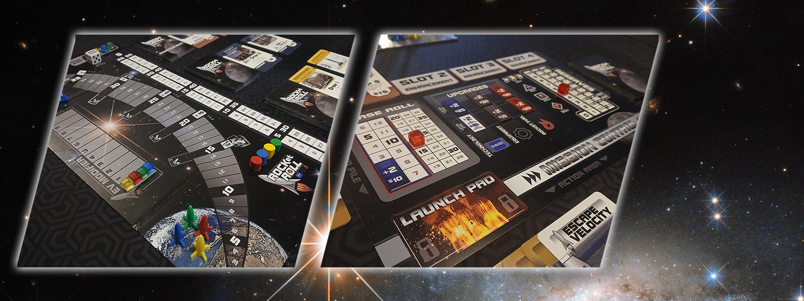 The success of the space program is literally in your hands! Build a completely unique deck from your opponents to be the first to launch a rocket into outer space. Lift off by rolling your Technology, Equipment and Rocket Fuel dice, which you can upgrade and modify throughout the game. The first one to reach 40 in Launch Points wins!