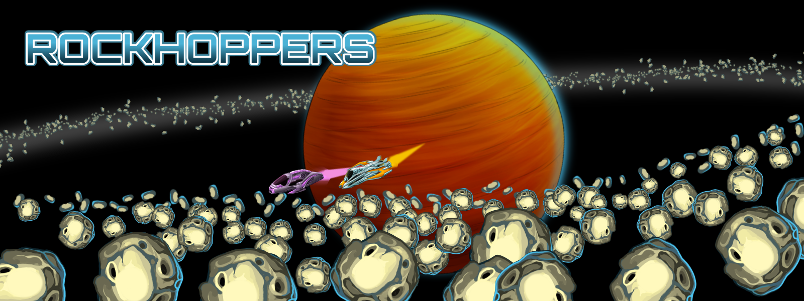 With six different factions to choose from, Rockhoppers sees all players simultaneously pilot their mining ships around the rings of Saturn in a race to mine rare crystals (‘dice’) hidden within the space rocks.