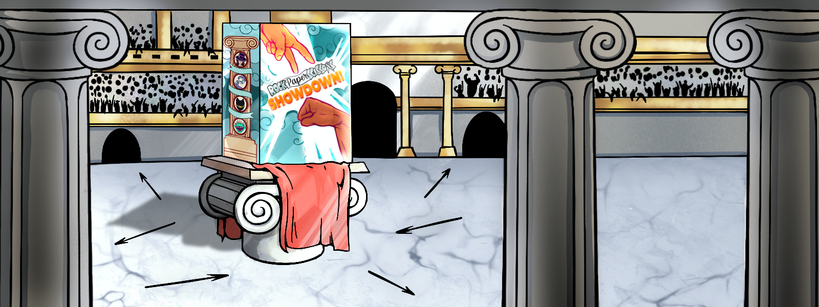 Rock Paper Scissors Showdown is a 2-4 player card game where players battle it out with 9 mighty Champions, in an ability-charged, modified rock-paper-scissors format. Games are as short as 3 minutes and as long as 15 minutes.