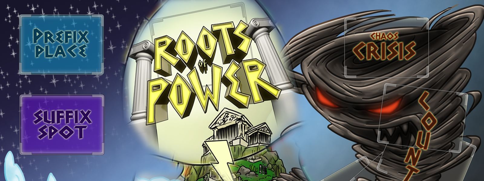 Developed with the help of the Games for Entertainment and Learning (GEL) Lab at Michigan State University, Roots of Power teaches Greek and Latin word roots. With a combination of chance-based, skill-based, and collaborative play, even the most beginning player has an even shot of winning. The game has been playtested many times and went through 10 iterations to perfect the playing mechanics.