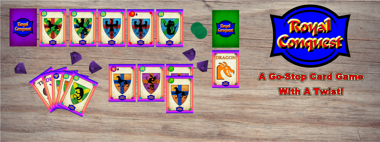 Royal Conquest is largely based on an old Korean card game called Go-Stop. Match cards from your hand to those on the table and form winning combinations to score points. |