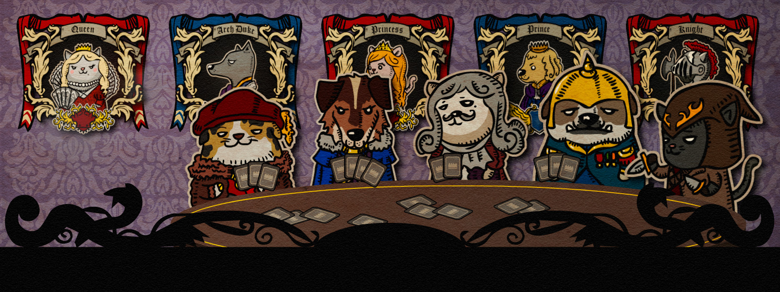 The King is dead! Long live the…who??? Amidst the power vacuum left by the King’s untimely demise, the Royal Courtesans are all salivating over the claim to the high seat of the regency throne. Secret coalitions are banded, Schemes are plotted, and good ol’ daggers are stabbed in the back. Play your hand of Royals in a game of Dominance assertion, all the while screwing your competitor. The crown is within your grasp; you just need to step over others to get it!