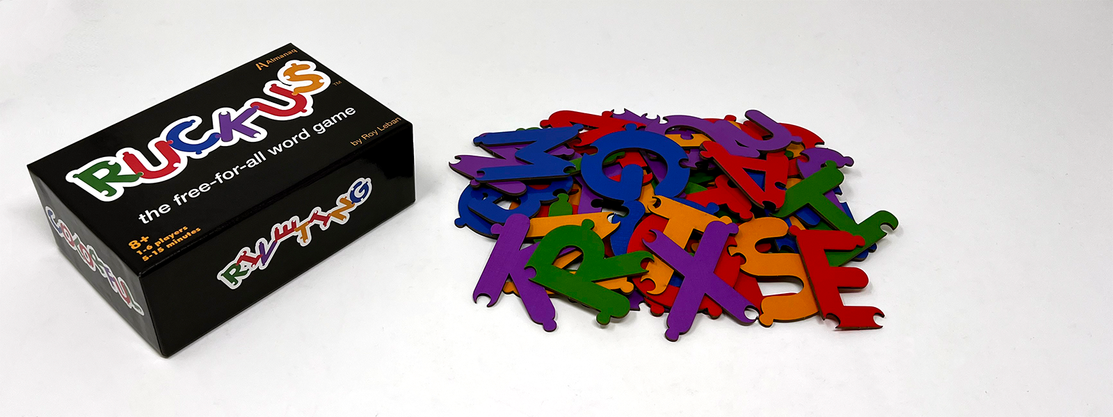 Ruckus is unlike any game you’ve ever seen before, but you can learn to play it in minutes! Start by dumping all the letters into the middle of your table.