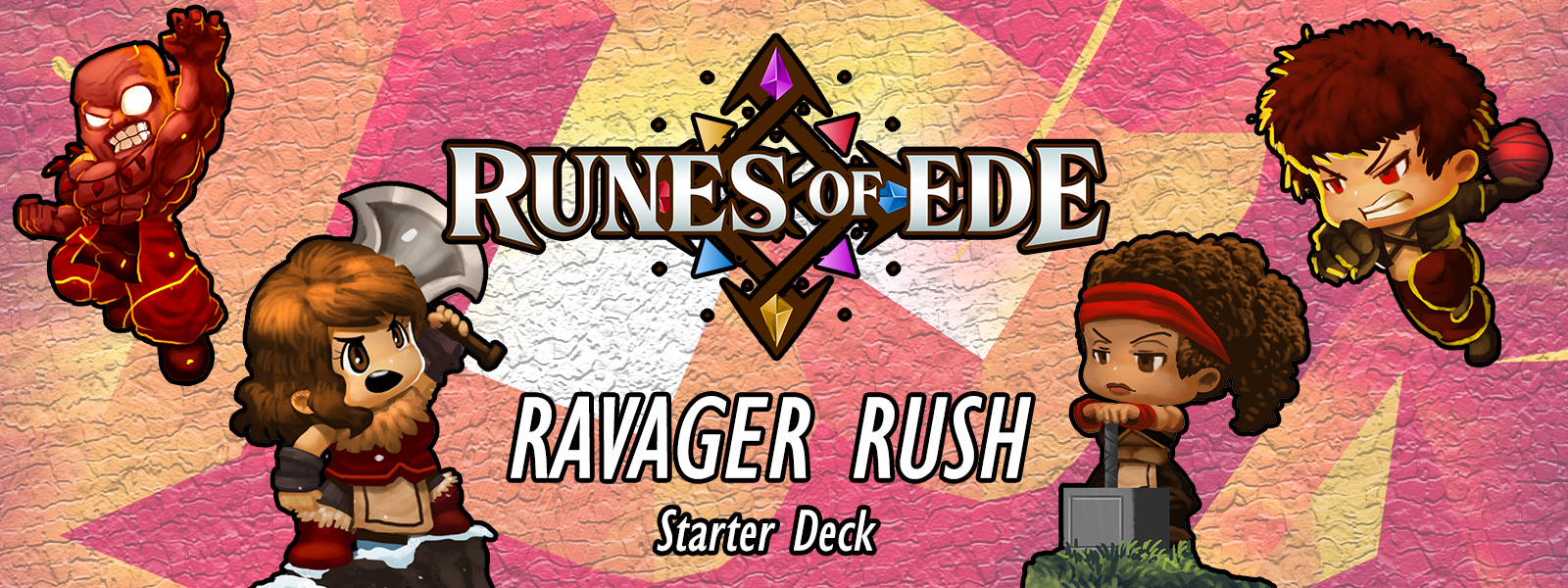 The "Ravager Rush" Starter Deck offers you a fully constructed, competitive deck right out of the box and is a great way to get introduced to the passionate Ravager faction while also starting your Runes of Ede collection!