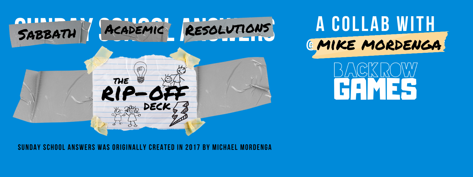 Established in 2017 by Michael Mordenga, Sunday School Answers is the original Christian knock-off / parody of C.A.H.! After years of self-publishing and original expansions sold in bags, we have redesigned and relaunched our game.