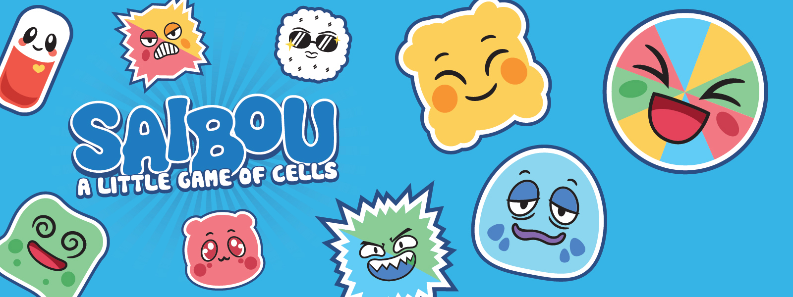 SAIBOU is the Japanese word for “cell”. Your goal is simple - create a culture of 9 cells in a 3x3 group before your opponents can! Use versatile Stem Cells and Macrophages to fill in gaps and protect yourself, but watch out! Other players can use nasty Bacteria and Virus cards to infect your cells and eat them!