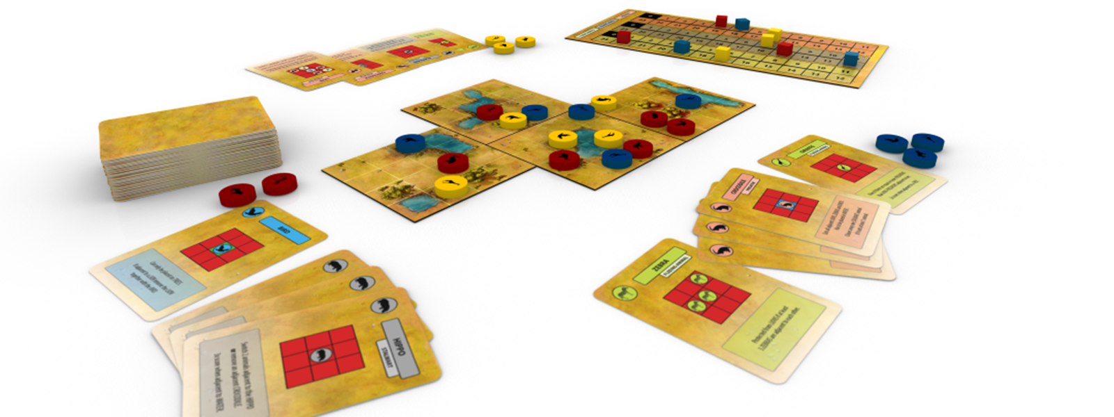 Players are trying to maintain the balance between animals and resources in the Savannah. The resource that a player collected the least of is crucial for end game scoring (a player's score is equal to her worst-scoring resource, not her best). The player whose least collected resource exceeds the least collected resources of the other players wins.