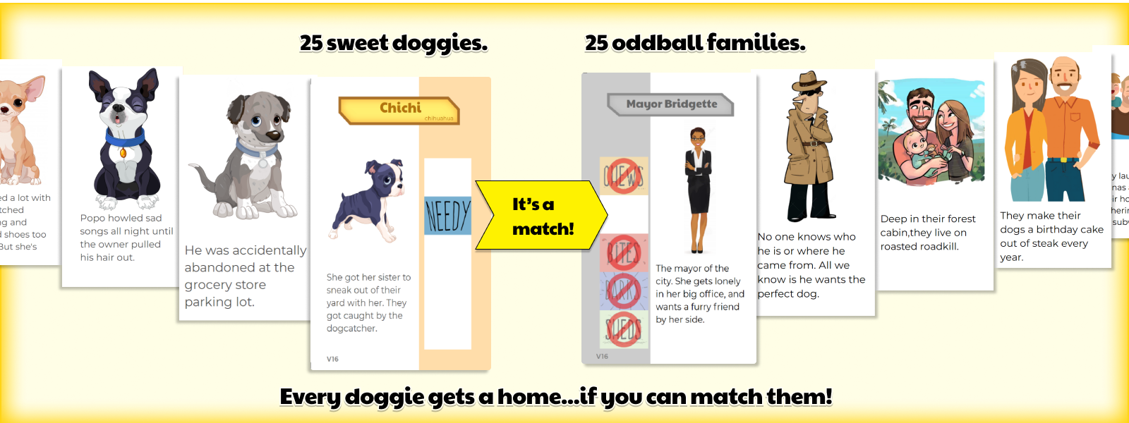 And the shelter never has enough money. You'll earn some income with a few good matches, and landlords, banks, taxes, computers-- it'll be gone in a flash. With clever moves and a lot of luck, you'll beat the odds, find a home for every doggie, without going bankrupt.