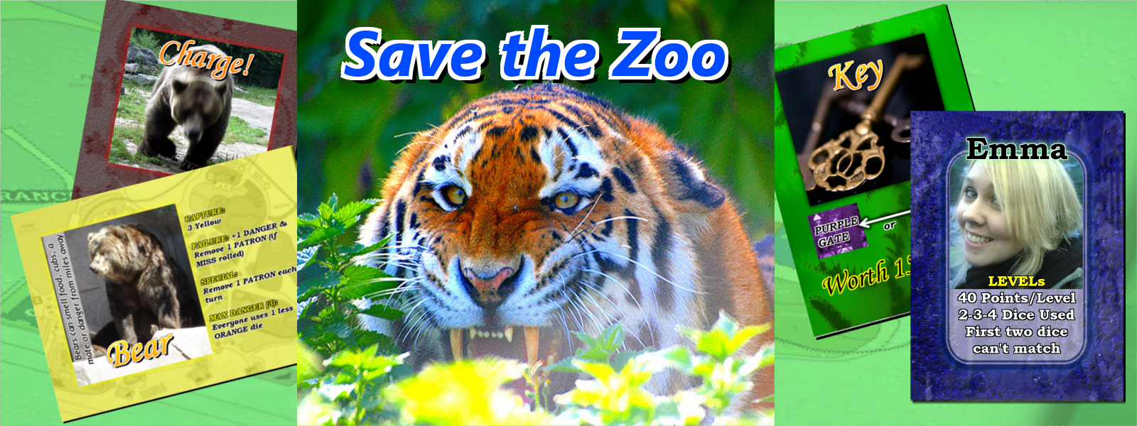 DESCRIPTION: You're excited about your first day at your new job - a Zookeeper at your local Zoo. You just didn't know what was in store for you. You arrived -- just as the animals have escaped! You must work together with the other zoo staff to recapture all of the animals. But be quick! Some of the animals are scary or dangerous. If all of the patrons leave before the animals are recaptured, the zoo will close.