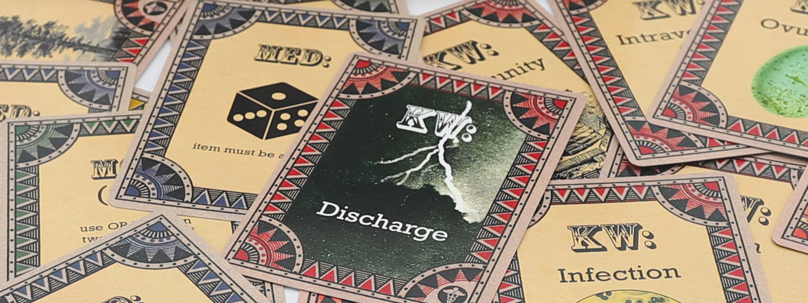 For health science librarians and medical students and practitioners. 4-6 players Ages 14+ Gameplay round = approx. 5-15min.