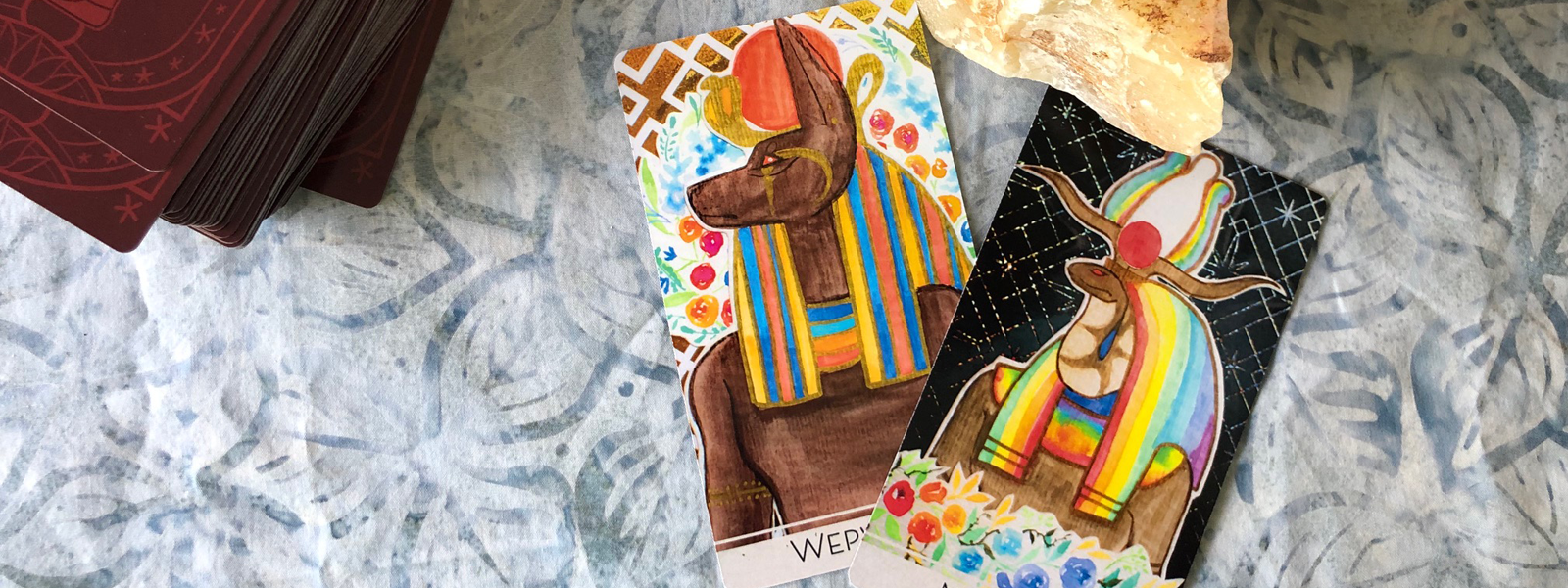 Connect to the Ancient Egyptian gods through this unique oracle deck. Sekhmet's Servant Oracle Deck has 100 cards, depicting both obscure and popular deities. This oracle deck was crafted within the first month of the Pandemic, during the mandatory shutdown. Named for the goddess of plague and healing, Sekhmet, the deck shows illustrations of many powerful and prominant divinities. Use this oracle to connect with these deities, as images in shrine, gain insight into issues, and see who might be willing to lend their support to your life.