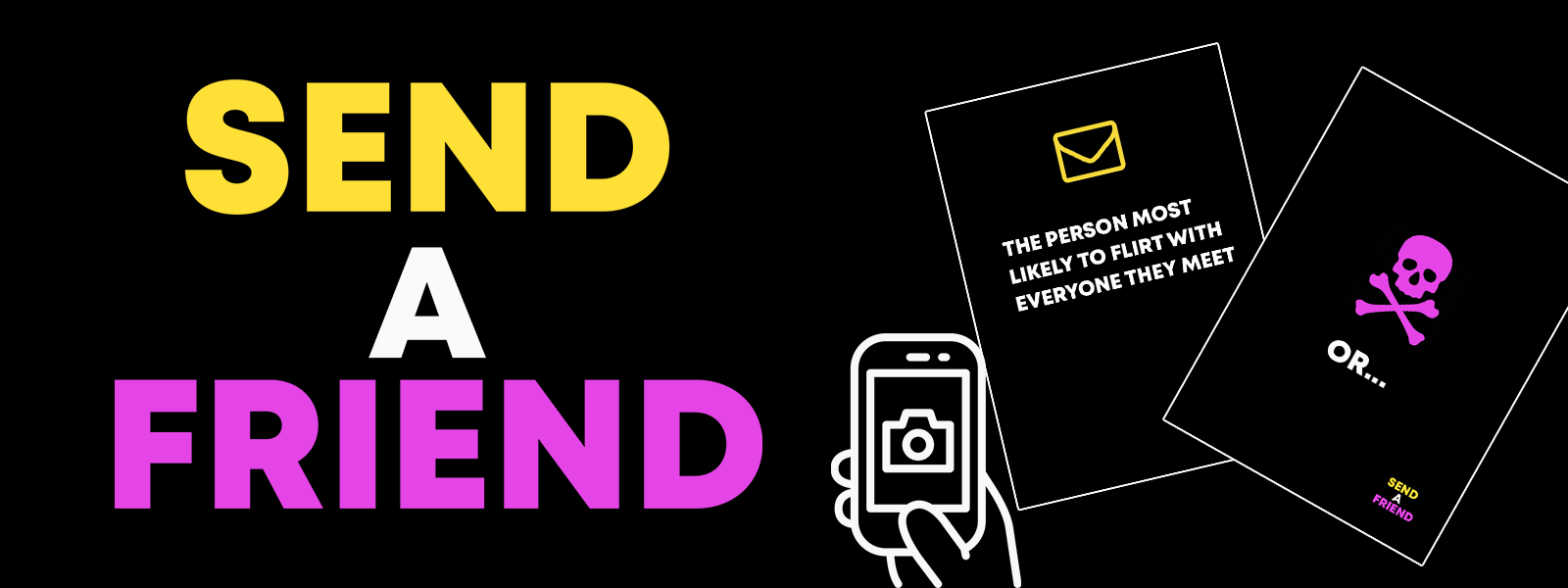 It's the perfect icebreaker. Awkward party? Boom! Instant laughs. It's super easy to play. Pick a card, play a card. Easy peasy. You'll make unforgettable memories. No joke, you'll be talking about game night for weeks! "Send A Friend" is the game where you gotta choose: laugh at your friends or let them laugh at you! So, call up your crew, grab a box, and get ready for the funniest night ever! It's time to Send A Friend... and maybe a few penalties!
