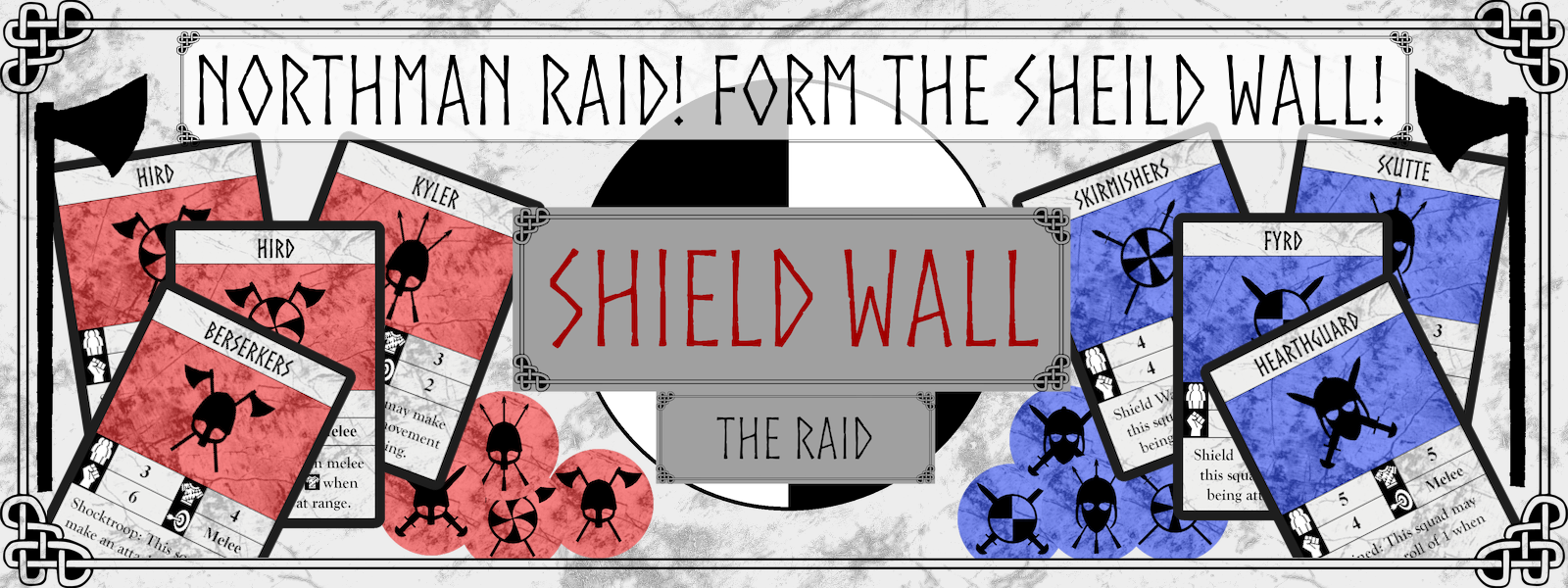 Shield Wall: The Raid is a two player tabletop skirmish wargame set during the Viking raids on England during the early middle ages. Players take the role of either the attacking Viking forces, or the defending Anglo-Saxon forces.