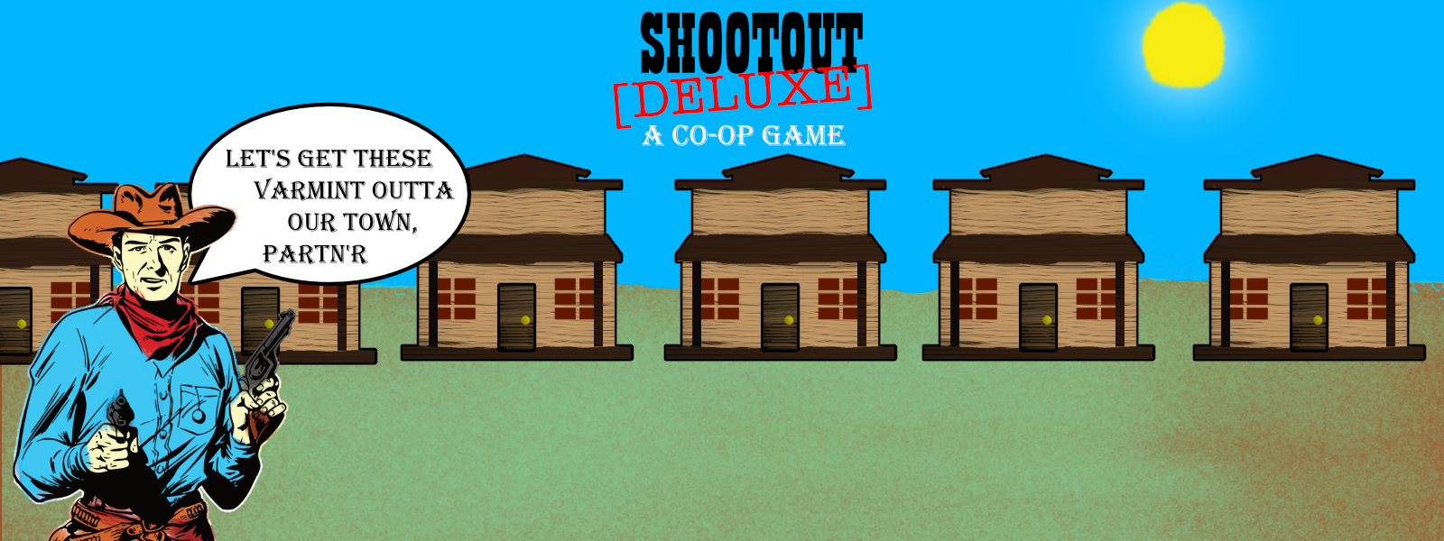In Shootout, you and a friend form a posse to go into town and secure the buildings from the outlaws occupying them. A shot rings out! Did you hear where it came from? If so you can get the drop on the outlaw, if not they get the drop on you. Once all the buildings are secure, you win the game. You may also be lone wolf and go into town by yourself.