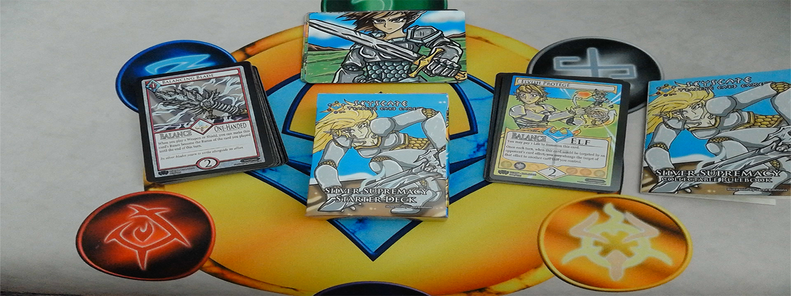 Featuring 40 Main Deck Cards,20 Summon Deck cards,11 Special Promotional Art Cards, 1 token,and a Collectible Rulebook,this Starter Deck fights using sword and steel!