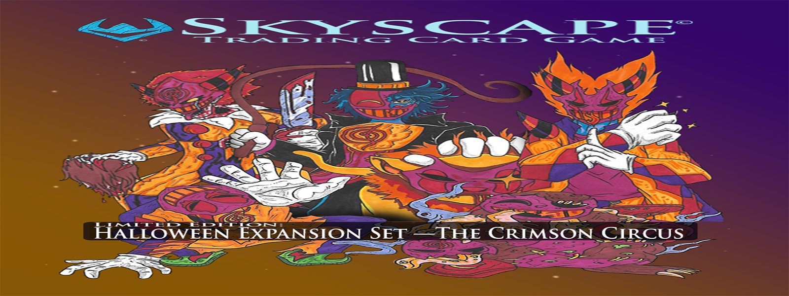 Increase the intense power of your very own Skyscape deck with this expansion, The Crimson Circus! In this booster, you'll find seven legendary cards that show off the monstrosities from the Crimson Circus itself! From clowns to freakshows, your craving for a spooky and deadly Halloween atmosphere will be fulfilled!