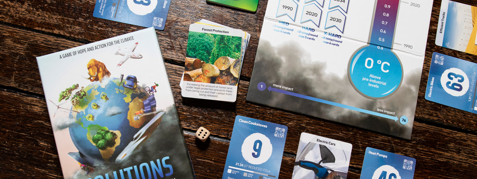 Les Solutions de ce jeu sont inspirées du travail révolutionnaire de Paul Hawken, co-fondateur du Projet Drawdown et fondateur de Regeneration. Développé par plus de 200 universitaires, scientifiques, décideurs, chefs d'entreprise et militants, le Projet Drawdown établit un solide cadre de référence pour l’analyse des solutions climatiques. Il classe 76 solutions climatiques en fonction de l'impact réaliste qu'elles peuvent avoir entre 2020 et 2050 en tenant compte, entre autres, des tendances technologiques, des tendances d'adoption, de l'économie et de l'analyse du cycle de vie du carbone.