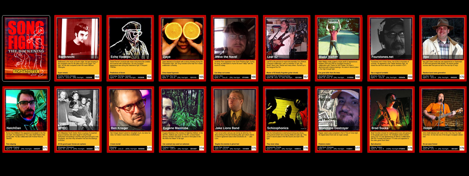 Rules for Song Fight! The Rockening trading game available as free download and at website.