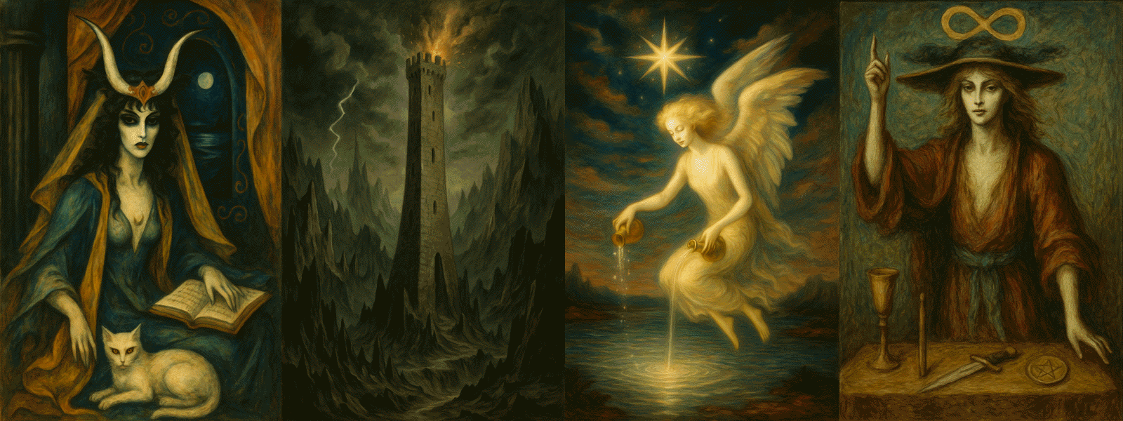 South American Surreal Tarot is inspired by Rider-Waite-Smith and Leonor Fini.