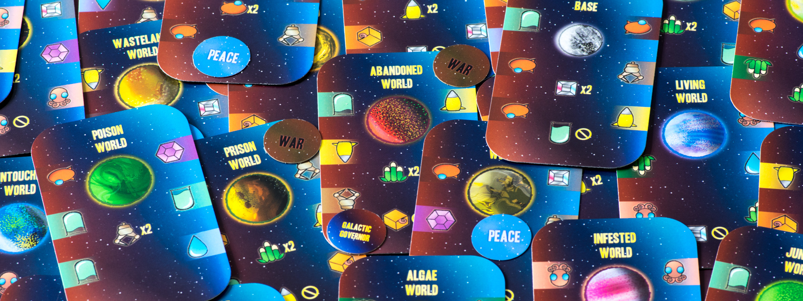 There’s a whole galaxy to explore - and it fits in a mint tin. You are an interplanetary trader, building your empire from the galaxy's many and varied Worlds.