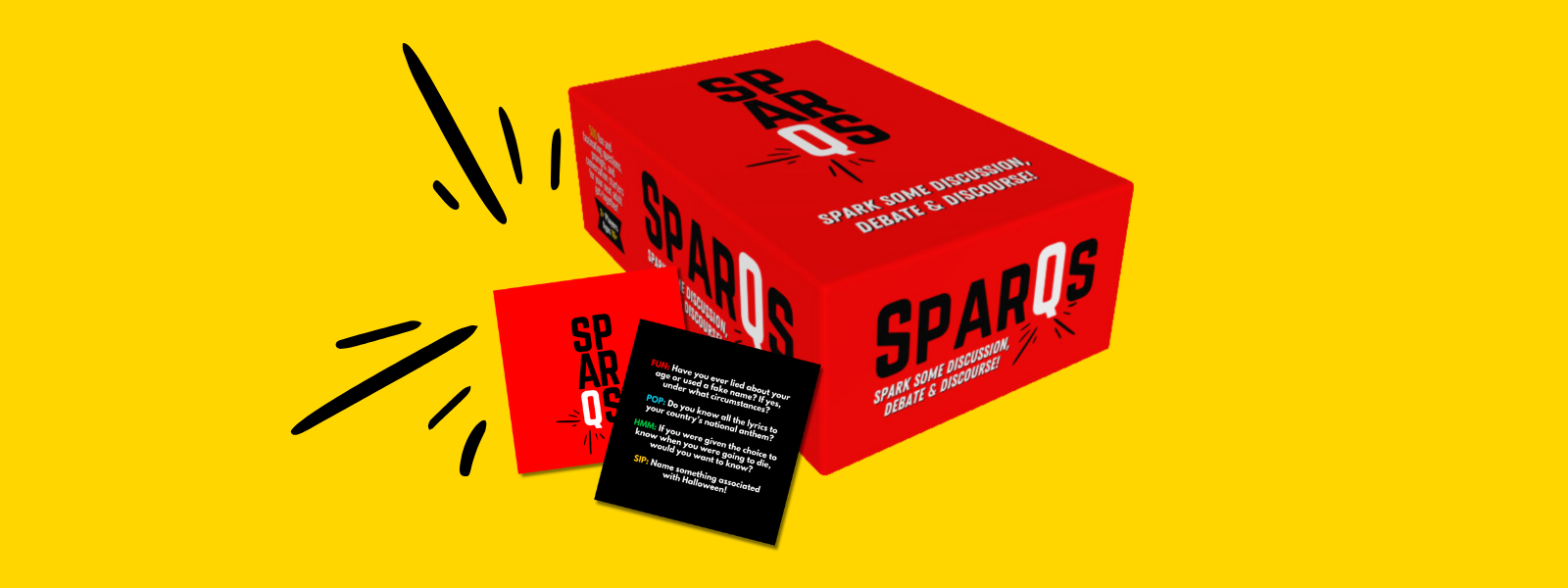 SparQs exists to help people get to know each other in a fun, relaxing, and yes, even structured way. It is meant to get people talking, to ignite discussion and debate, and to get the ball rolling on an evening of fascinating and eye-opening conversation!