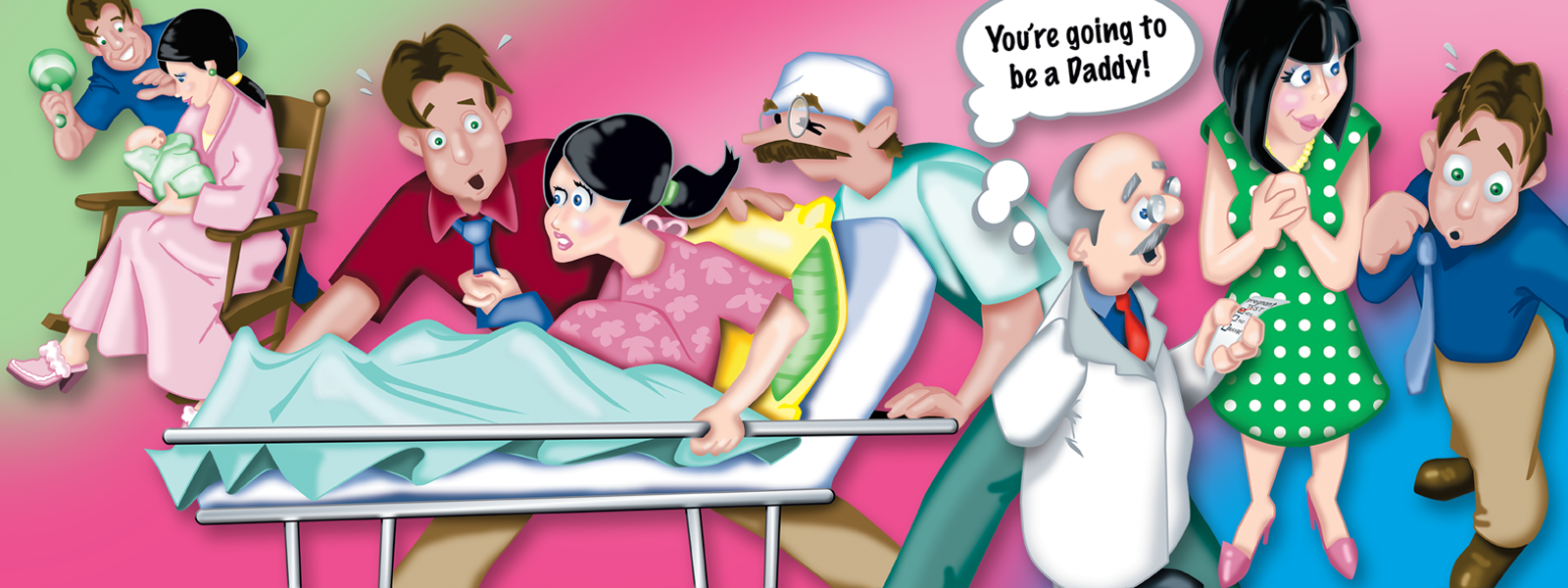An exciting drawing game that takes you through the 3 trimesters of pregnancy and all the way to the delivery room. It's an exhilarating race between the pink team and blue team to deliver their baby first. A hilarious game for expectant couples, expectant families, and gender reveal parties. This gift will be the talk of the baby shower!