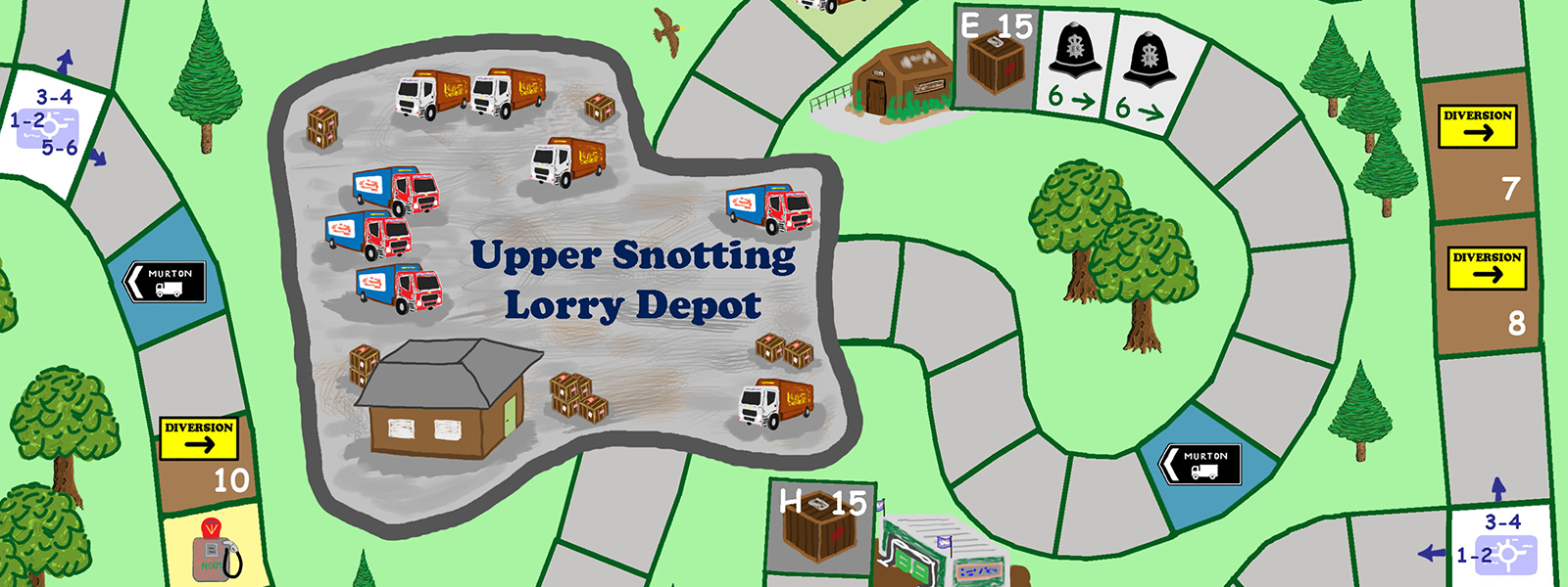 You are a lorry driver working for the Speedy–Krate Haulage Co. based at the lorry depot at Upper Snotting. The owner of the company, Algernon P. Speedy-Krate, has in place a ‘Star Employee’ scheme that sees the driver who delivers the most consignments in a day getting a prize. Last week, it was a BIG bucket of mint choc chip ice cream.
