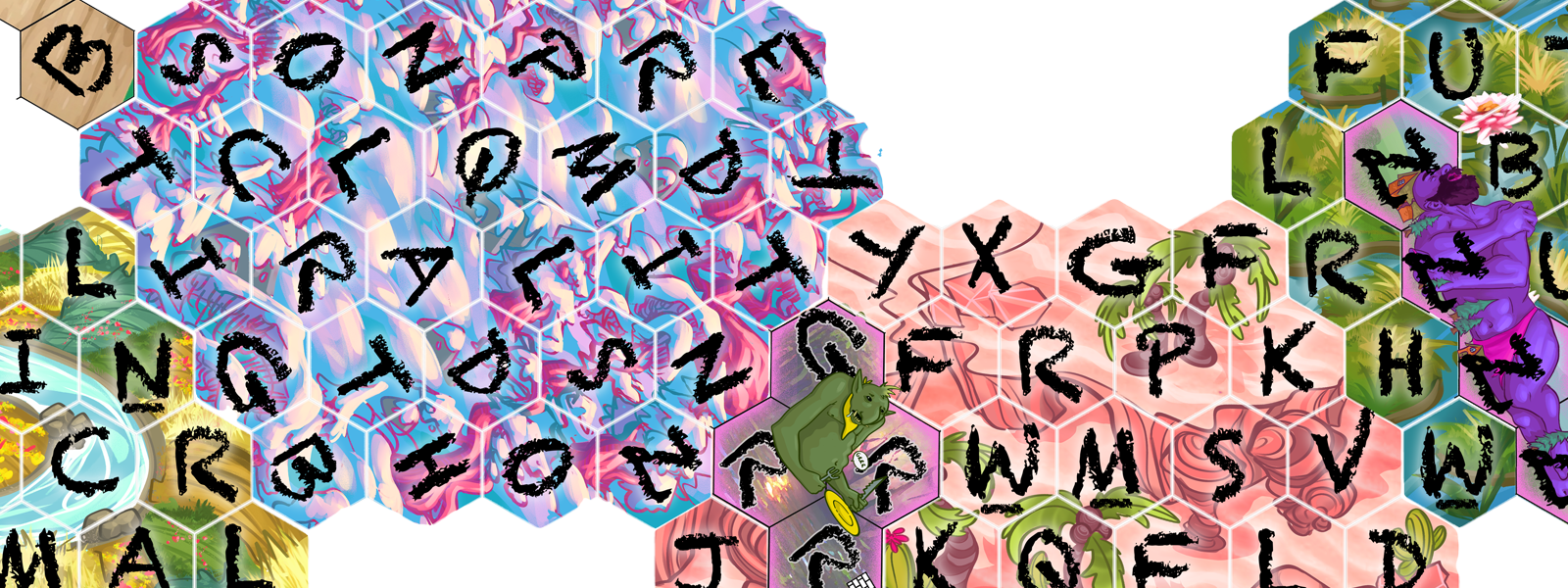 Spells is a hex-grid, pick-up and deliver, open draft, race-ish adventure word game. Players take turns traversing the magical wild lands, spelling words and making tricky decisions about whether to race to the end or go on side quests.