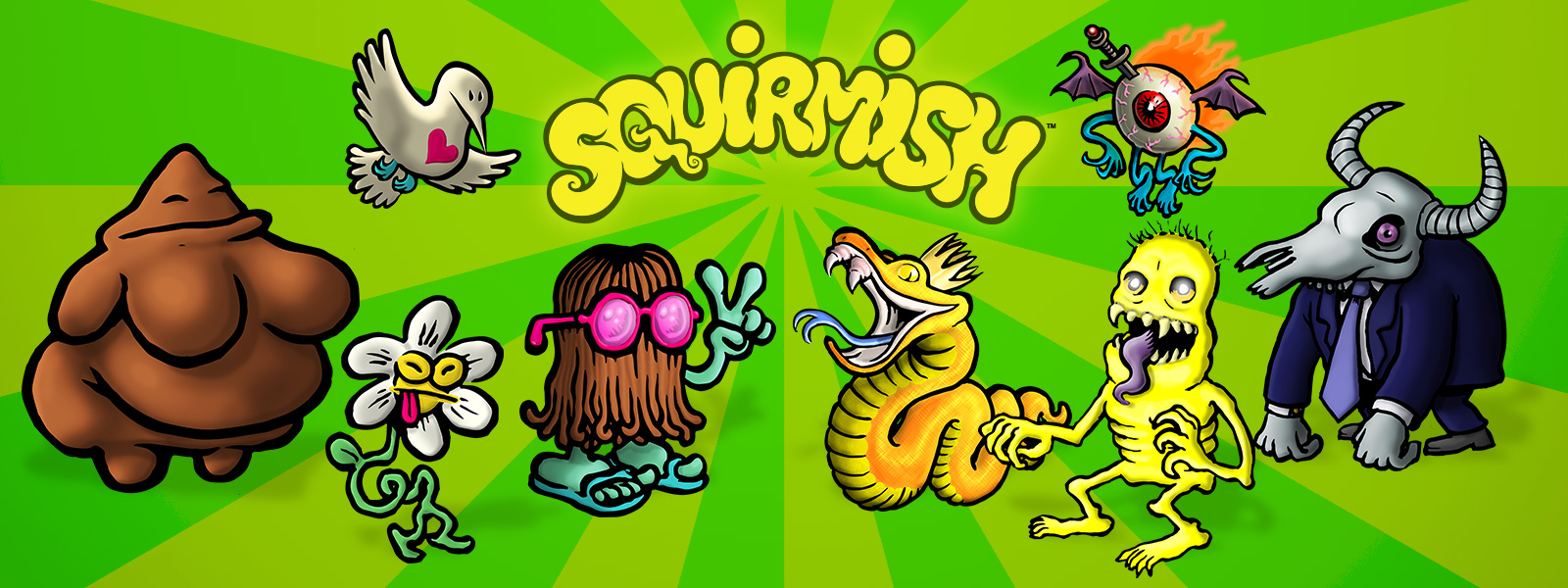 Squirmish is now also a videogame on Steam! The videogame includes a host of wild new characters that you get to battle against (in both single and two-player multiplayer)! You can check out the videogame here!