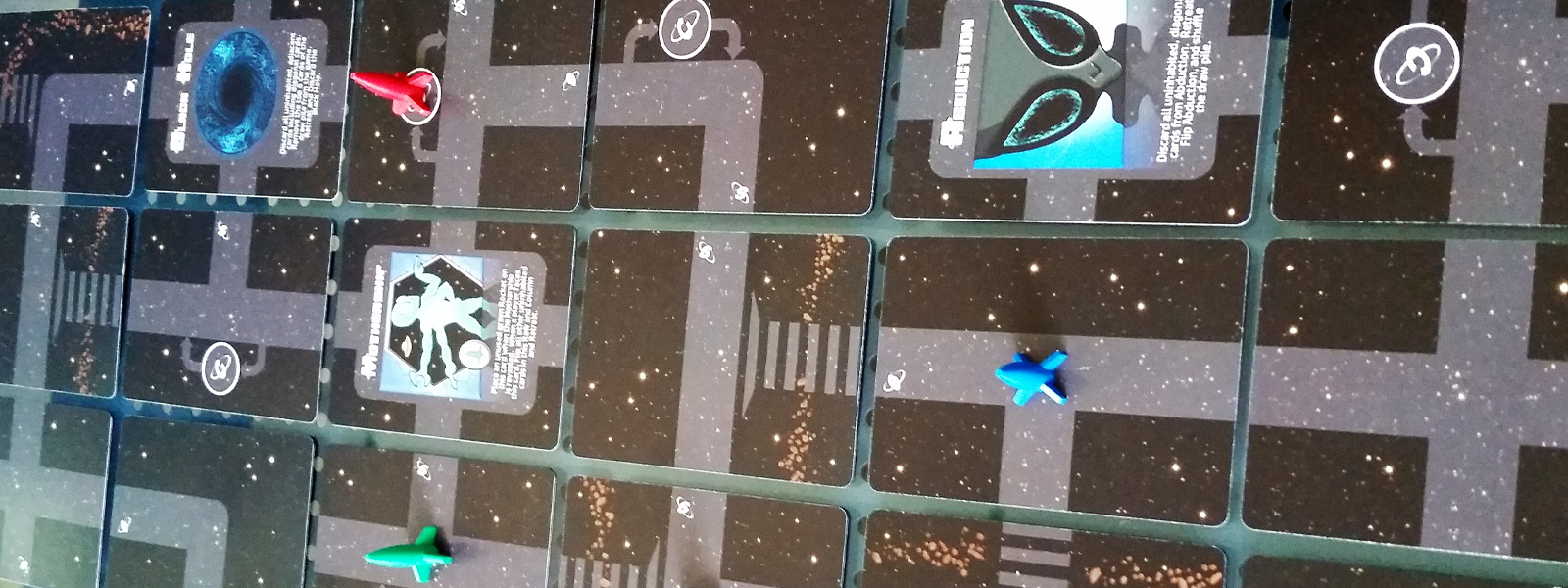 Stellar Racers is based on our game Woven In Myth, only now in space! Stellar Racers adds some new rules such as being able to cloak your ship to avoid hostile alien contact, and hyper-lanes to jump closer to your goal. Stellar Racers also adds the dynamic of team play, a 2 on 2 race across the galaxy. Be the first to move your rocket across a map of stellar anomalies while flipping and rotating cards to victory!