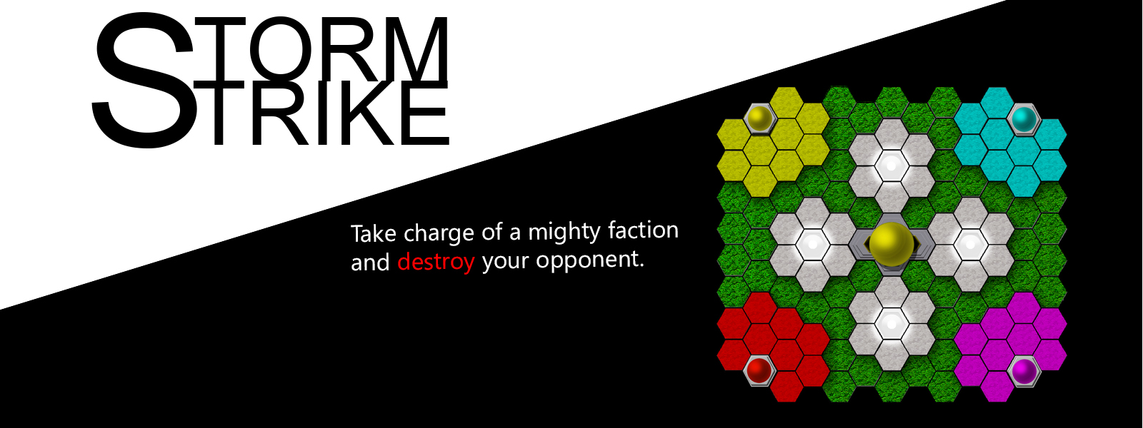 Storm Strike is a 2 or 4 player board game that focuses on strategy. You will take on the role of one of four unique factions. Throughout the game you will level up and gain access to new abilities, expand your base, upgrade your units, and destroy your opponent.