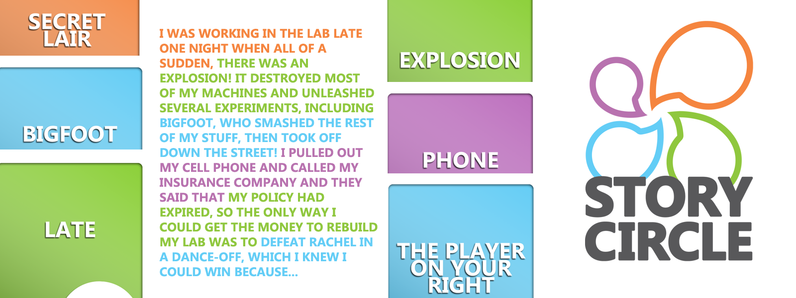 Story Circle is a storytelling game where players are encouraged to open the floodgates of imagination and work together to create a fun (and often silly) story.