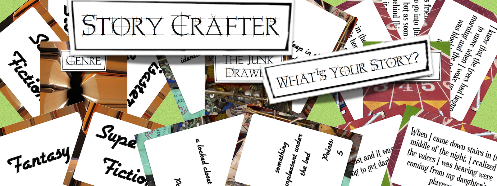 Second Edition: • Changed font to improve readability • Increased the number of Genre cards • Increased the number of Junk Drawer cards • Improved the point value ratio of the Junk Drawer cards included in each box • Replaced Question cards with Story Starter cards and decreased the number slightly to allow room for more of the other card types and more complete directions • Included a booklet of more complete directions including a description of each Genre card included in the set.
