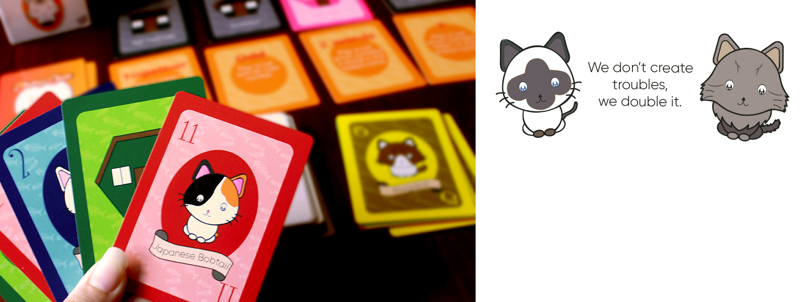 Stray Cats is a family-friendly card game purrfect for family gatherings, meet ups, and for you to have a good time. It is age friendly and suitable for children ages 12+, fun, quick and easy to learn card game with a purpose to bring cats to a home sweet home.