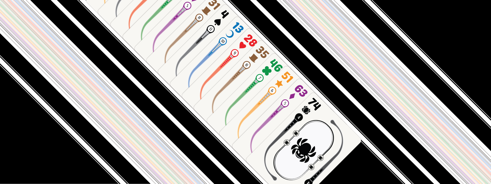 Each player has a hand of cards, but unlike your standard deck, there are eight suits... and they all have different numbers of cards! Each round, every player will play one card, and at the end of the round, the “best” card wins the trick.