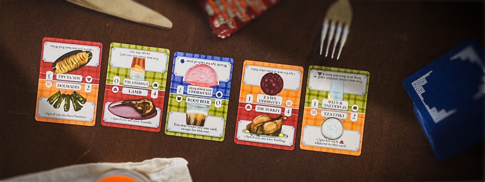 When someone has a Complete Meal (one of each of the four types of Dishes), the round ends. You’ll score points based on the Dishes in your Meal.