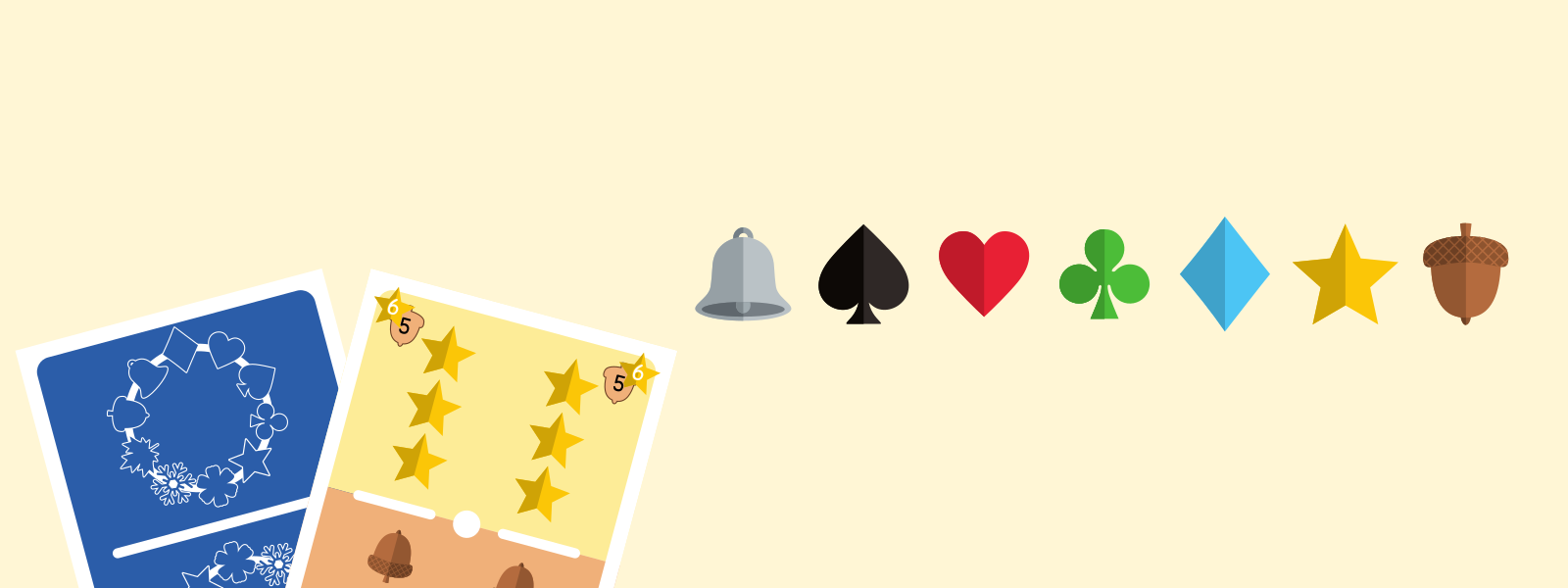 The suits aren't random! The number on one side of the card determines the suit on the other. Ever thought the Texan national game of 42 was confusing because of all the numbers to keep track of? Well here the suits do half the work for you!