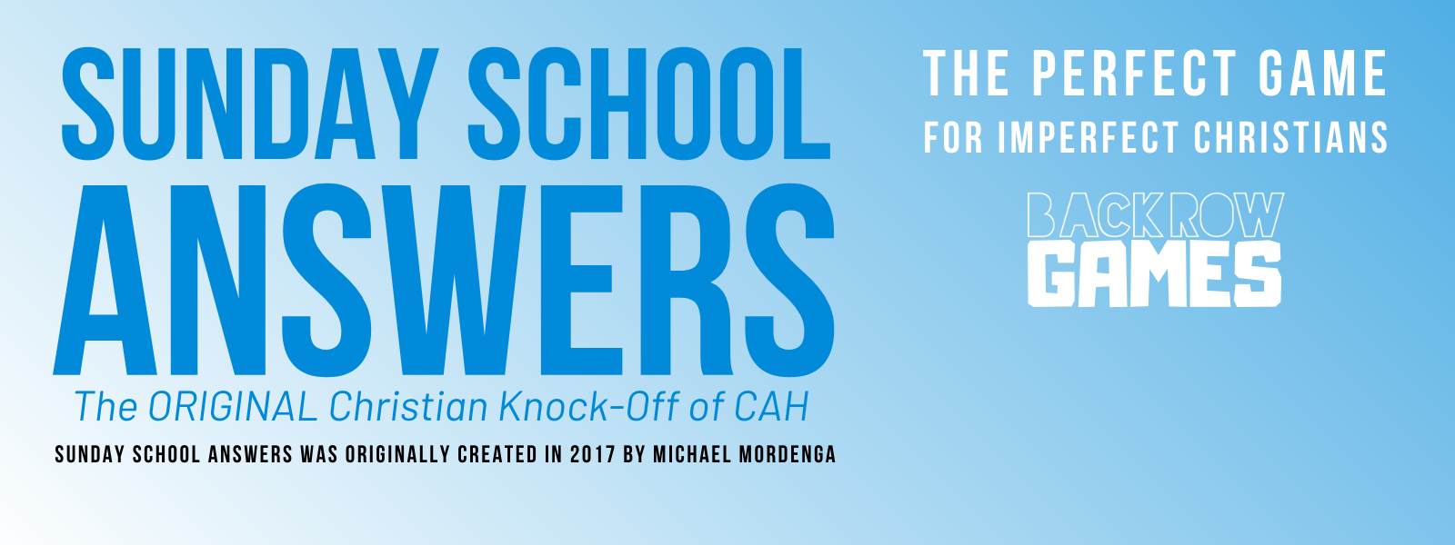 Back Row Games is just one of several projects that all spawned from one original church comedy Twitter account - Back Row Baptist. Though the account no longer exists, the humor it spread into the world lives on in morning shows, Facebook groups, card games, parody songs, videos, and books. Once in the top tier of Twitter Church Anon accounts, we're sharing cards inspired by some of our best tweets.
