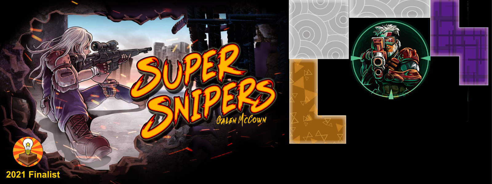 Super Snipers is a fast-to-learn, fast-to-play, two-player sniper duel featuring simultaneous turns, no downtime, a familiar polyomino placement mechanic used in a novel and exciting way, and an intense real-time mode!
