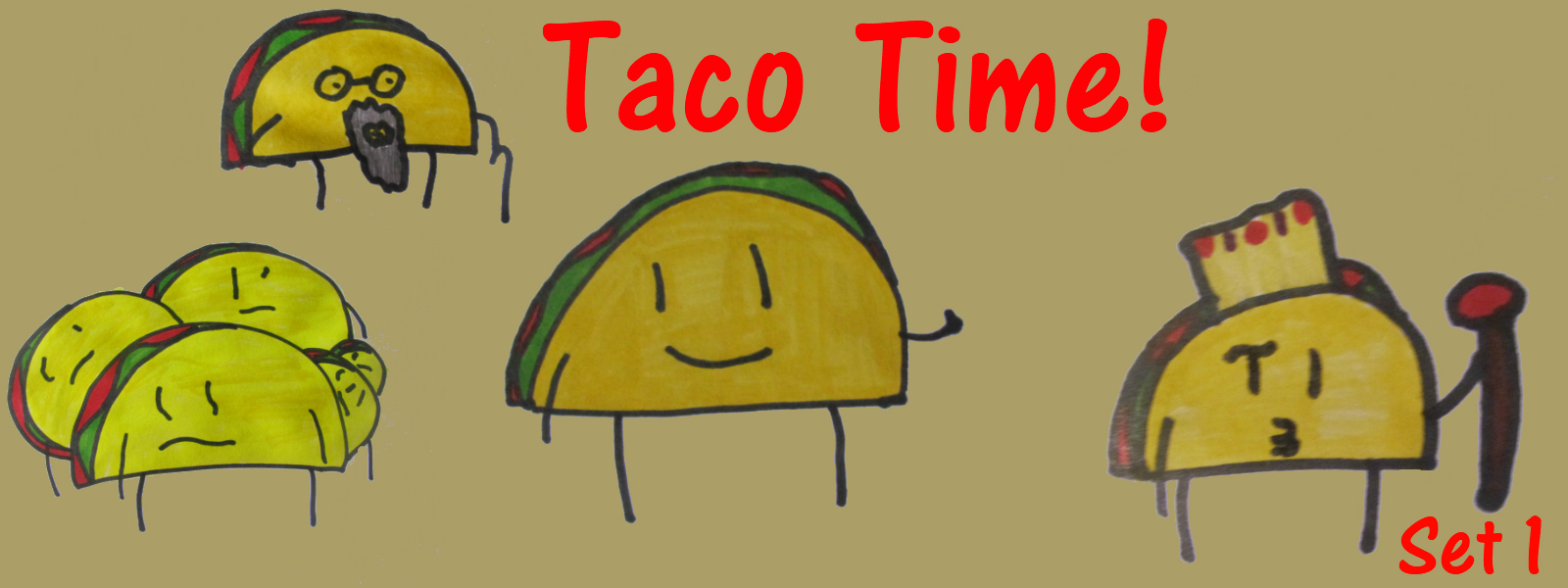 Taco Time! is a two player game of luck. This set 1 box includes all 36 cards from Taco Time! Set 1. It also includes one instruction booklet. Taco Time! is a quick and easy game to pick up and it's fun for all ages! Now get your friends and go play some Taco Time!!!