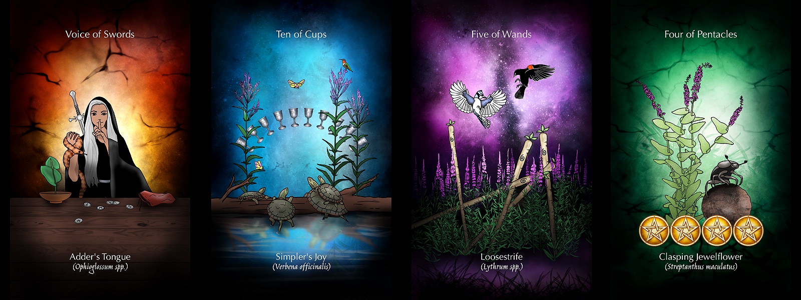 The word wortcunning can be broken into two useful parts. The old english word "wort" meaning a common or medicinal plant, and the word "cunning" meaning crafty or skillful application of knowledge. Combining tarot and wortcunning can result in a kind of unique synergy. This deck is designed to help facilitate that synergy.