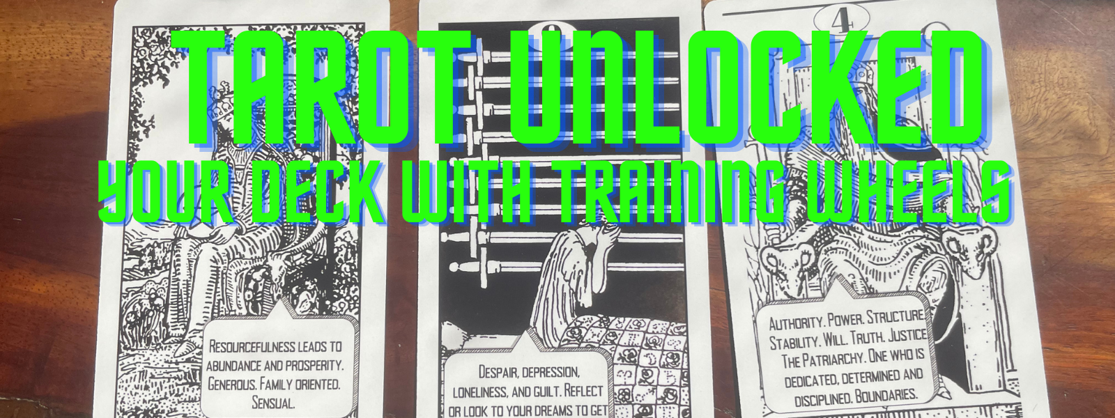 The Tarot Unlocked is your Rider Waite deck with training wheels. On each card, a character from the card is shown with a word bubble telling you the meaning of that card. It's as though the figures on the cards are talking to you!