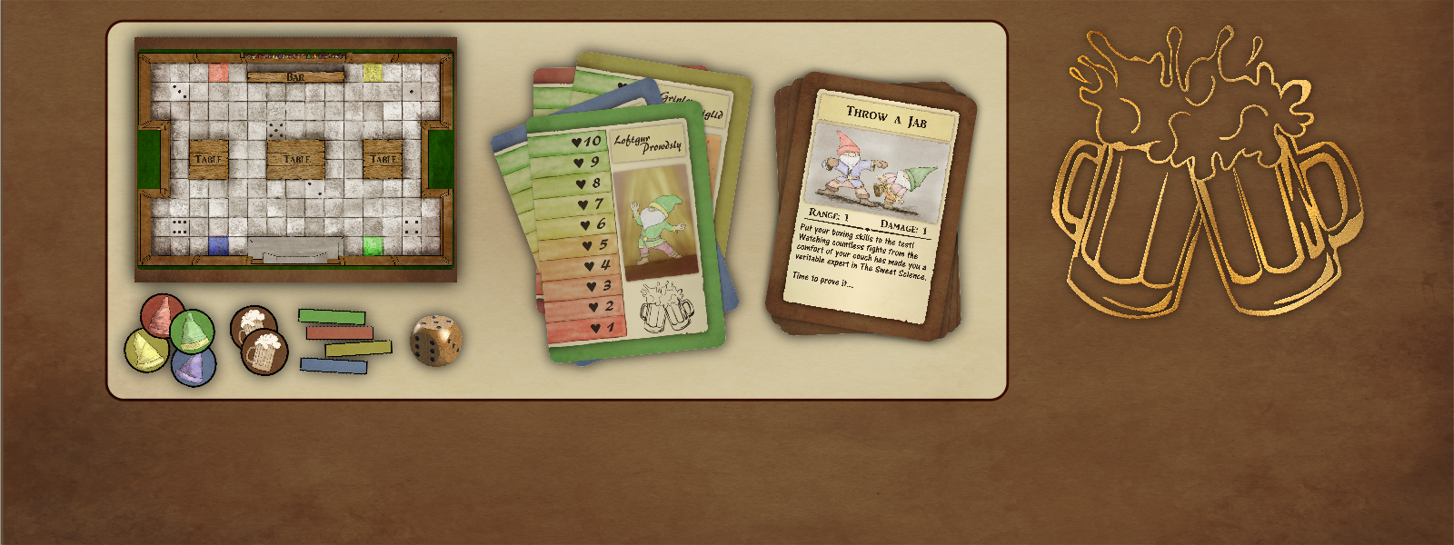 Tavern Tumult: Print-and-Play Edition is a DIY version of our hilariously fun 4-player fighting game, Tavern Tumult! The game is set in a whimsical tavern full of rowdy, tough-as-nails, root beer swilling, gnomes. Weather the barrage of tiny fists, dish out some damage of your own, and don't forget to raise a frothy mug and toast to friendly carnage!