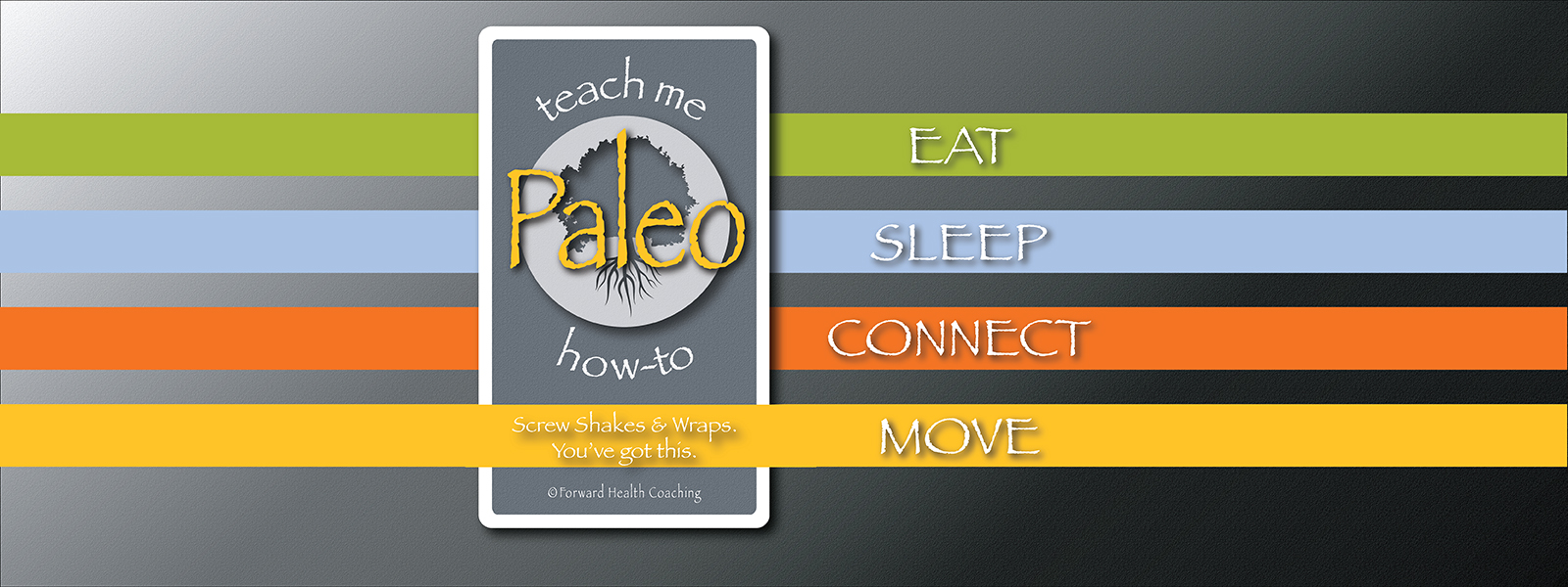 The deck is separated into 5 main categories: Learn, Eat, Move, Sleep, and Connect. Each card has an action item on it that challenges you to learn about the particular card topic, and then put it into practice.