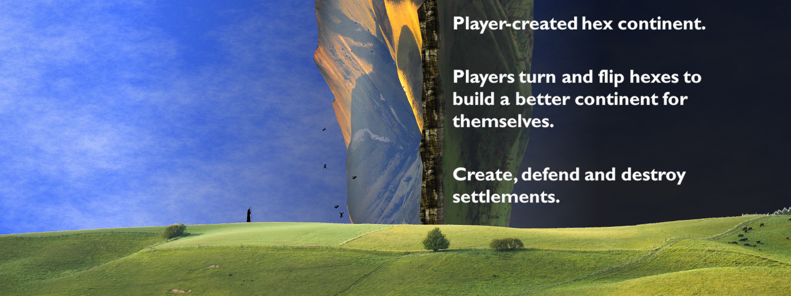 Building settlements lets players connect new populations to their capital to form new trade routes. These settlements are smaller and less permanent than the capitals. Without protection, these settlements are ripe for destruction when a hex is reversed by the other player.
